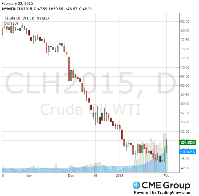 В пятницу на Нью-йоркской товарной бирже нефть WTI с поставкой в марте подорожала на $3,71, или на 8,33%, и закрыла неделю на цене $48,24 за баррель на фоне признаков, что американские производители начали сокращать производство из-за снижения цен.
