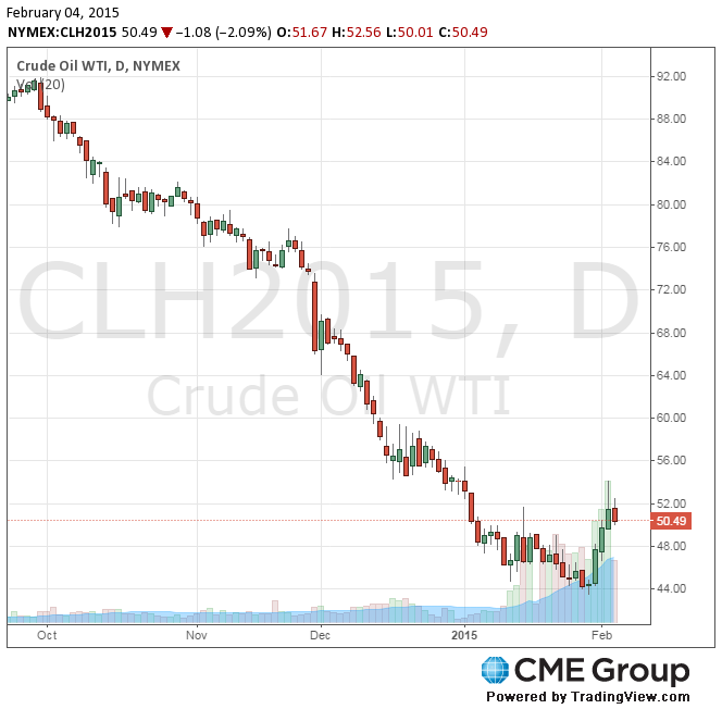 Цены начали резко восстанавливаться после того, как исследовательская группа Baker Hughes заявила 30 января, что на прошлой неделе количество буровых установок в США снизилось на 94 (или на 7%) - до 1223, минимума с октября 2013 года.