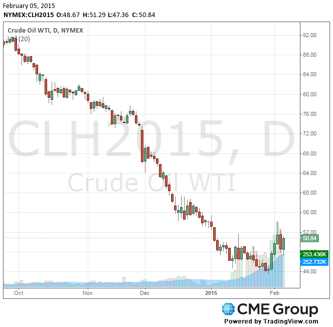 Цены на нефть марки West Texas Intermediate подскочили в цене почти на 19% после 5,5-летнего минимума $43,58, достигнутого 29 января, на фоне признаков того, что американские производители сокращают добычу, реагируя на снижение котировок.