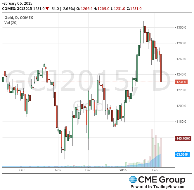 Стоимость апрельского фьючерса на золото на COMEX сегодня упала до 1228.20 долларов за унцию.