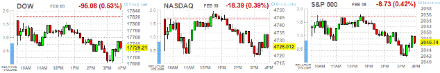 Американские фондовые индексы закрылись ниже нулевой отметки. Сегодня на динамику рынков влияли разочаровывающие китайские экономические данные и увеличение напряженности вокруг греческих долговых переговоров. Небольшую поддержку оказал рост цен на нефть.