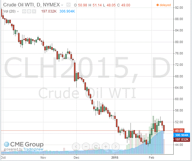 Стоимость мартовских фьючерсов на американскую легкую нефть марки WTI (Light Sweet Crude Oil) снизилась до 49,00 доллара за баррель на Нью-Йоркской товарной бирже.