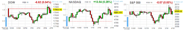 S&P -0.01% 2,068.44 -0.15