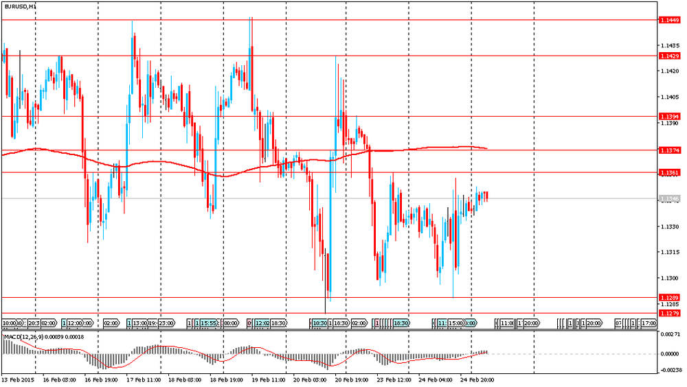 В 09:30 GMT в Британии выйдет объем ипотечного кредитования от ВВА за январь. В 15:00 GMT выступает председатель совета управляющих ФРС Джанет Йеллен. В это же время США опубликует объем продаж жилья на первичном рынке за январь, а в 15:30 GMT выйдут данные по запасам сырой нефти от министерства энергетики. В 16:30 президент ЕЦБ Марио Драги выступит с речью. Завершит день в 21:45 GMT Новая Зеландия данными по сальдо торгового баланса (за 12 мес, от начала года), сальдо баланса внешней торговли за январь.