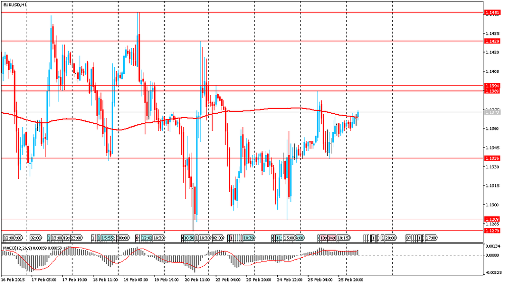 Австралийский доллар упал против доллара США после публикации негативной статистики в Австралии. Стало известно, что падение капиталовложений компаний в четвертом квартале оказалось существенней, чем прогнозировалось. Объемы частных капитальных затрат в Австралии снизились до -2.2%, что ниже ожиданий -1.9%. Предыдущее значение было пересмотрено с +0.2% на +0.6%. Кроме того, компании отмечают, что они ожидают гораздо меньших инвестиций в году, который завершится 30 июня 2016 года. В то же время, фьючерсы по процентным ставкам выросли, при этом рынки учитывают более чем 50-процентную вероятность понижения ставки РБА в марте против 40% ранее.
