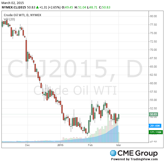 Стоимость апрельских фьючерсов на американскую легкую нефть марки WTI (Light Sweet Crude Oil) выросла до 51,04 доллара за баррель на Нью-Йоркской товарной бирже.