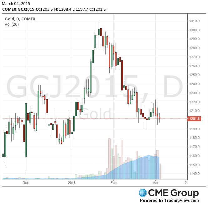 Стоимость апрельского фьючерса на золото на COMEX сегодня упала до 1197.70 долларов за унцию.