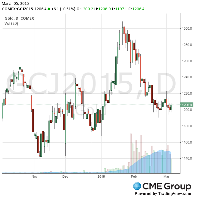 Цены на золото демонстрируют подъем после того, как глава Европейского центрального банка Марио Драги заявил о старте 9 марта ежемесячной программы покупки облигаций на сумму 60 млрд. евро. Банк также указал, что программа продлится до тех пор, пока инфляция не вернется на путь к целевым 2%.
