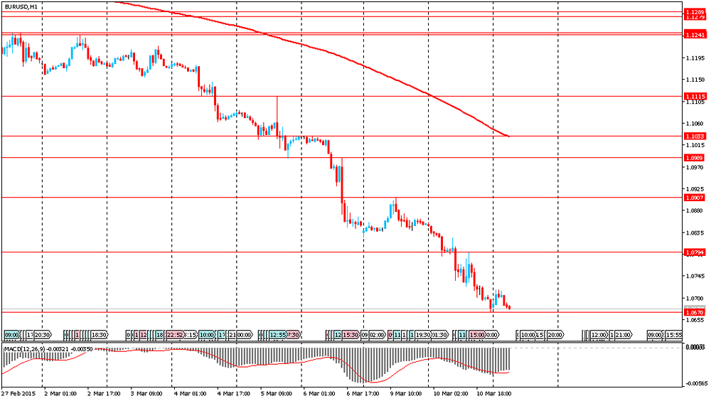 Евро вновь обновил 12-ти летний минимум и остается под давлением на фоне объявленной Европейским центральным банком программы количественного смягчения на сумму 60 млрд евро в месяц. Соотнося крайне мягкую политику ЕЦБ с приготовлением ФРС к повышению процентных ставок уже в июне, инвесторы отказываются от евро. С прошлого лета единая европейская валюта потеряла относительно доллара более 20% своей стоимости.