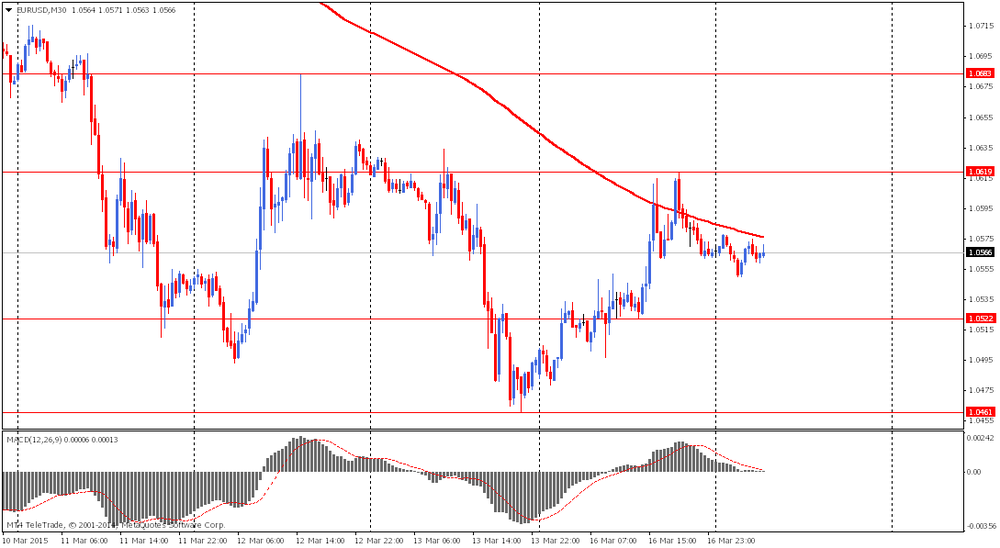 Евро торговался сдержанно после вчерашнего роста связанного с выступлением главы ЕЦБ, Марио Драги. В понедельник банкир заявил, что восстановление экономики в еврозоне укрепляется, отчасти благодаря мерам по стимулированию, предпринятым центральным банком. На прошлой неделе ЕЦБ начал приобретать большие объемы государственных облигаций и других долговых обязательств в рамках программы, известной как количественное смягчение.
