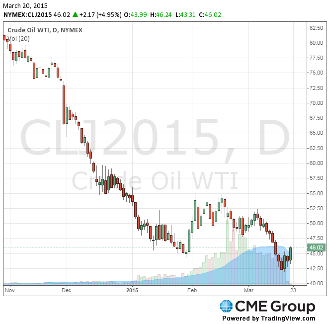 Стоимость апрельских фьючерсов на американскую легкую нефть марки WTI (Light Sweet Crude Oil) выросла до 46,24 доллара за баррель на Нью-Йоркской товарной бирже.