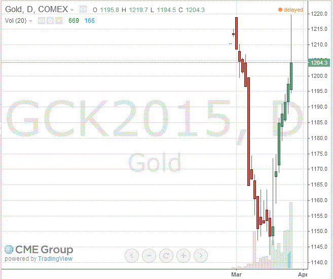 Стоимость майского фьючерса на золото на COMEX сегодня выросла на $6,8 - до 1204.30 долларов за унцию.