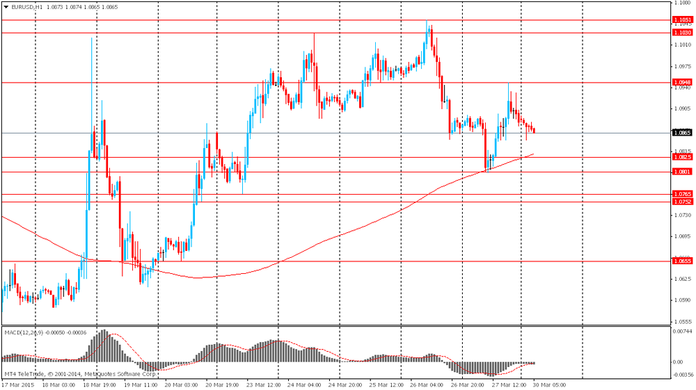 Начнет серию отчетов Швейцария - в 07:00 GMT будет представлен индекс ведущих экономических индикаторов от KOF за март. Затем в 08:30 GMT Британия отчитается по объему чистых займов частным лицам и количеству одобренных заявлений на получение ипотечного кредита за февраль. В 12:00 GMT Германия выпустит предварительный индекс потребительских цен за март. После этого в 12:30 GMT Канада опубликует индекс цен на сырье за февраль, а США представит основной индекс расходов на личное потребление и индекс-дефлятор личных потребительских расходов за февраль и заявит об изменении уровня расходов населения за февраль. В 14:00 GMT в США выйдет отчет по изменению объема незавершенных сделок по продаже жилья за февраль. В 21:45 GMT Новая Зеландия объявит об изменении объема выданных разрешений на строительство февраль. Завершится день статистикой по Британии - в 23:05 GMT будет представлен индикатор потребительской уверенности от GfK за март.
