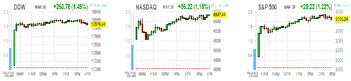 Фондовые индексы США выросли более чем на 1% в понедельник. Индексы отскочили от резкого снижения на прошлой неделе, когда основные индексы потеряли более 2%.