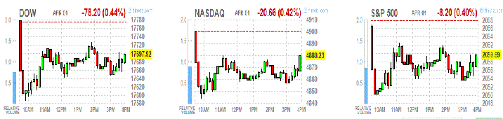 Почти все компоненты индекса DOW завершили торги в минусе (24 из 30). Аутсайдером стали акции Wal-Mart Stores Inc. (WMT, -2.07%). Больше остальных выросли акции The Goldman Sachs Group, Inc. (GS, +2.11%).