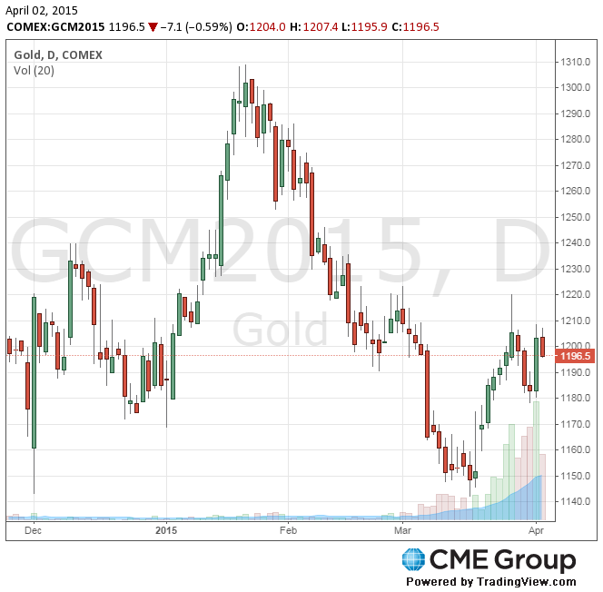 Стоимость июньского фьючерса на золото на COMEX сегодня упала до 1195.90 долларов за унцию.