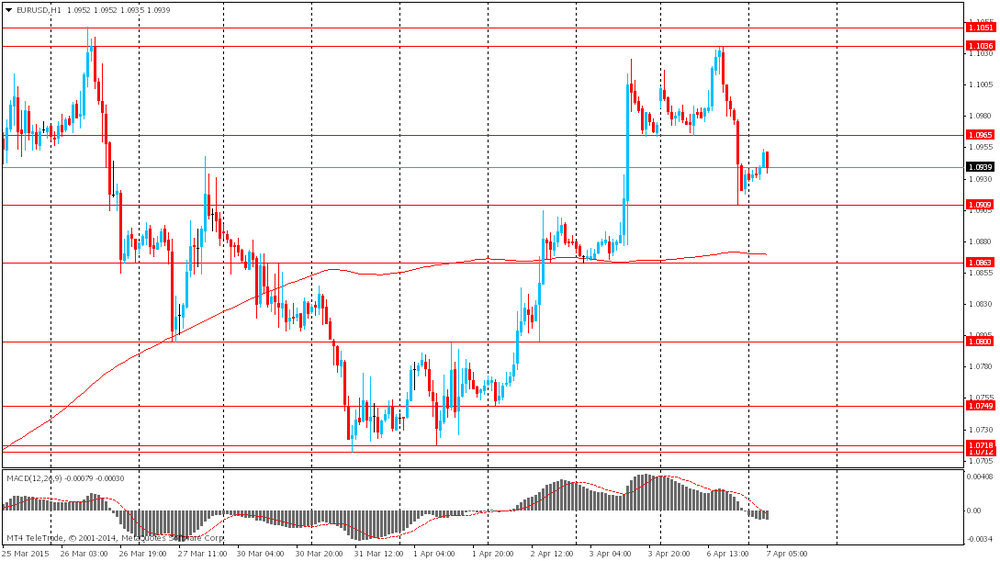 Американский доллар мало изменился в цене после пятничного обвала вызванного публикацией слабой макростатистики. Число занятых в несельскохозяйственных отраслях экономики выросло с учетом сезонных колебаний до 126 тыс рабочих мест в марте. Это было самым слабым ростом с декабря 2013 года. Среднемесячный прирост в первом квартале составил 197 тыс, по сравнению со средним 324 тыс в течение последних трех месяцев 2014 года. Уровень безработицы, полученный из отдельного обследования домашних хозяйств, не изменился и составил 5,5%. Экономисты ожидали, что число занятых вырастет гораздо сильнее, на 251 тыс в марте и прогнозировали, что уровень безработицы будет на прежнем уровне 5,5%.