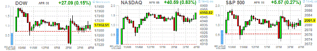 Основные фондовые индексы США завершили торги выше нулевой отметки, что было связано с публикацией протокола заседания ФРС и старта сезона корпоративной отчетности. Протоколы заседания ФРС от 17-18 марта показали, что руководители ФРС на своем последнем заседании разделились во мнениях о том, будут ли они готовы к июню начать повышать краткосрочные процентные ставки. В то время как несколько руководителей думали, что июнь будет правильным временем для повышения ставок, другие полагали, что снижение цен на энергоносители и сильный доллар США окажут давление на инфляцию и будут оправдывать сохранение ставок около нуля, где они находятся с декабря 2008 года. На том заседании ФРС изъяла из своего заявления заверение в том, что она будет проявлять терпение, прежде чем повысить ставки. Это сразу же открыло дверь для повышения ставок в июне. Протоколы показали, что мнения на этот счет действительно разделились.