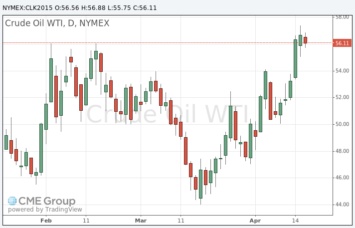 Цена июньских фьючерсов на североморскую нефтяную смесь марки Brent снизилась на 59 центов, или на 1%, до 56,12 доллара доллара за баррель на лондонской бирже ICE Futures Europe.