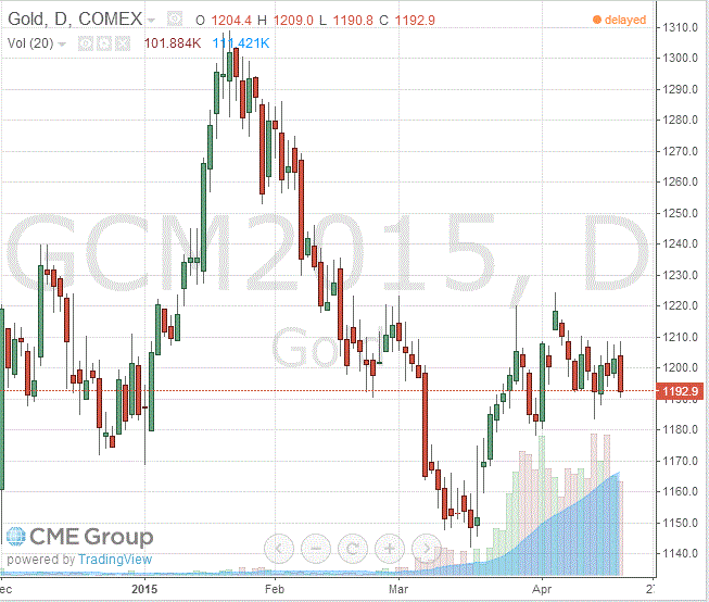 Стоимость июньского фьючерса на золото на COMEX сегодня упала до 1192.90 долларов за унцию.