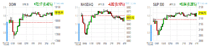 Большинство компонентов индекса DOW завершили торги в плюсе (19 из 30). Аутсайдером стали акции Apple Inc. (AAPL, -1.71%). Больше остальных выросли акции Merck & Co. Inc. (MRK, +5.17%).