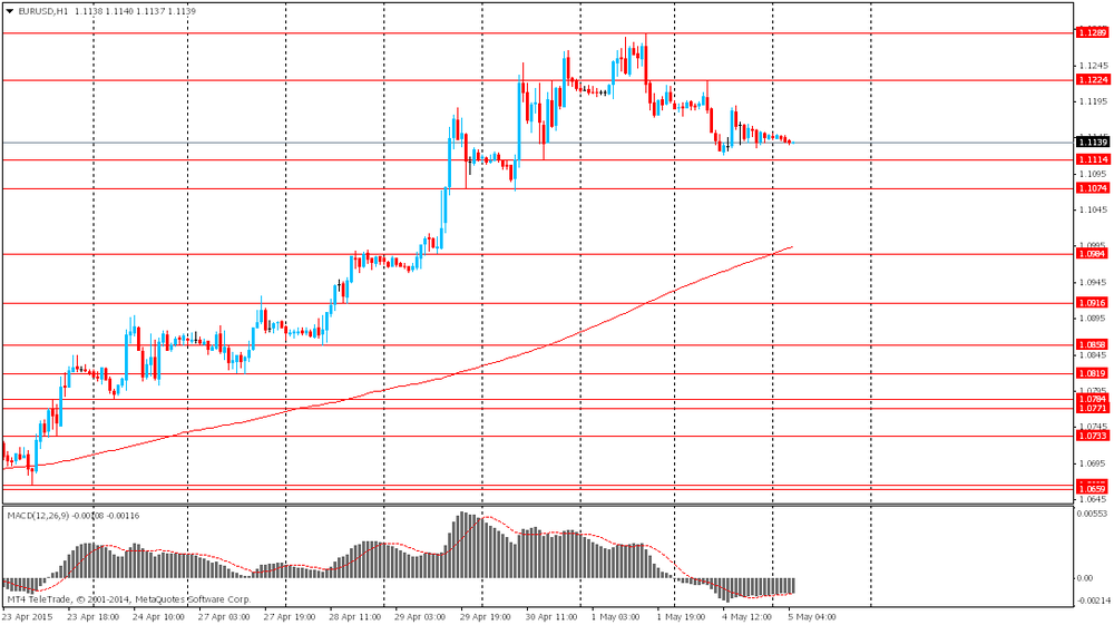 Доллар немного вырос на фоне роста доходностей 10-летних казначейских облигаций США. Это связано с тем, что процентные ставки ФРС могут быть скоро повышены, что приводит к сокращению коротких позиций по доллару. Ключевым событием этой недели станет публикация отчета по занятости в США. Именно эти данные могут прояснить ситуацию относительно сроков повышения ставки. Согласно среднему прогнозу экономистов, в апреле число занятых в несельскохозяйственных отраслях экономики США, вероятно, выросло на 213 тысяч, против 126 ранее. Также инвесторы ожидают сокращения уровня безработицы с 5.5% до 5.4%.