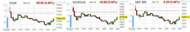 Американские фондовые индексы умеренно снизились, что было связано с заявлениями главы Федеральной резервной системы США Джанет Йеллен о том, что оценка акций является "в целом довольно высокой," и предупреждения о возможных опасностях. Тем не менее, Йеллен описала риски финансовой стабильности как "умеренные, не повышенные" и сказала, что не видит каких-либо признаков формирования финансовых пузырей.