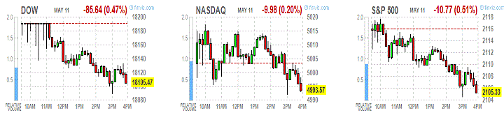 Большинство компонентов индекса DOW завершили торги в минусе (24 из 30). Аутсайдером стали акции Exxon Mobil Corporation (XOM, -2.48%). Больше остальных выросли акции Caterpillar Inc. (CAT, +1.67%).