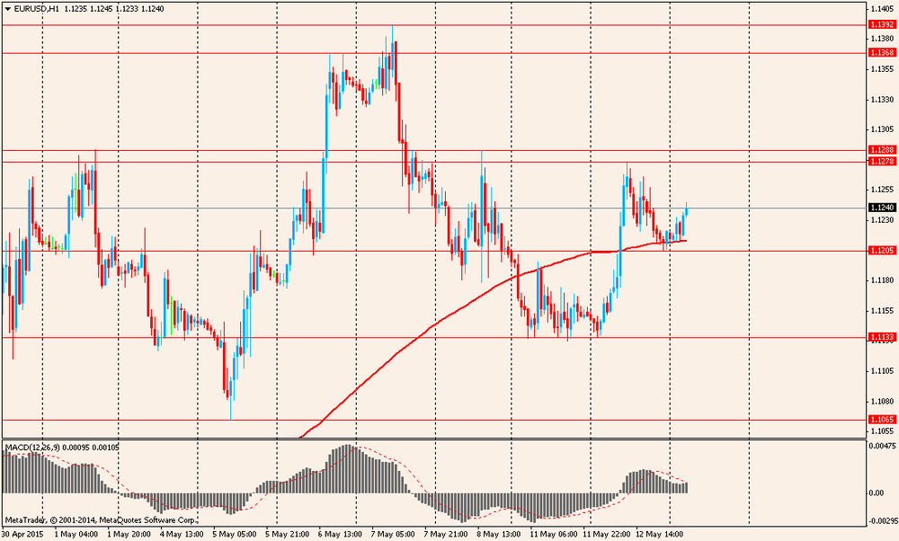 В 06:45 GMT Франция сообщит об изменении индекс потребительских цен за апрель. Затем в 08:30 GMT Британия заявит об изменении числа заявлений на получение пособий по безработице за апрель. Кроме того, станет известно об уровне безработицы и изменении уровня среднего заработка за март. В 09:00 GMT еврозона опубликует данные по изменению объема ВВП за 1 квартал и изменению объема промышленного производства за март. После этого в 09:30 GMT губернатор Банка Англии Марк Карни выступит с речью. В это же время выйдет отчет Банка Англии по инфляции. В 11:30 GMT состоится публикация отчета ЕЦБ со встречи по монетарной политике. Немного позднее (в 12:30 GMT) США заявит об изменении объема розничной торговли за апрель. Затем в 22:45 GMT Новая Зеландия сообщит об изменении объема розничных продаж за 1 квартал. Завершится день статистикой по Японии - в 23:50 GMT будет опубликованы предварительные данные по изменению объема ВВП за 1 квартал.