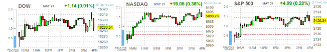 Фондовые индексы США немного выросли сегодня, в то время как индекс S&P 500 закрылся около рекордных отметок. Свежая порция разочаровывающих экономических данных укрепили ожидания инвесторов, что Федеральная резервная система не будет повышать процентные ставки в ближайшее время.