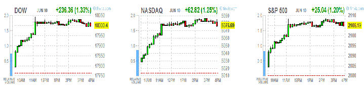 Основные фондовые индексы США выросли в среду после доклада Bloomberg, что Германия может согласиться на по крайней мере одну экономическую реформу Греции в обмен на помощь. Все три основные индекса выросли более чем на 1% впервые за месяц.