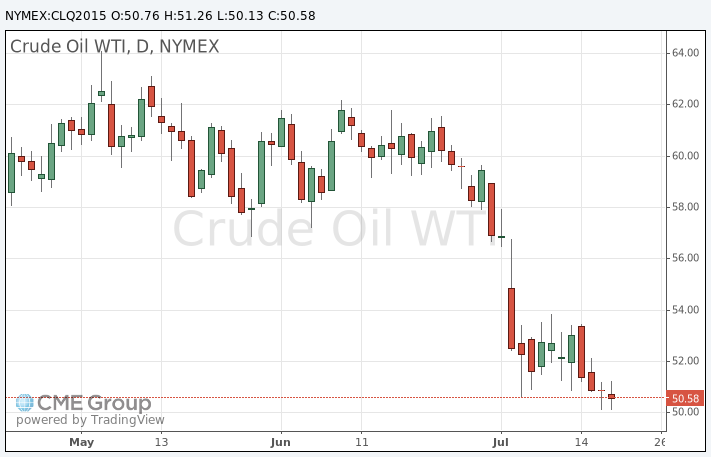 Стоимость августовских фьючерсов на американскую легкую нефть марки WTI (Light Sweet Crude Oil) упала до 50,13 доллара за баррель на Нью-Йоркской товарной бирже.