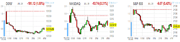 Основные фондовые индексы Уолл-стрит снизились во вторник на фоне слабых квартальных результатов компаний IBM (IBM) и United Technologies (UTX), которые потянули вниз Dow и S&P 500. Инвесторы ожидали квартальные результаты технологических гигантов, включая Apple и Microsoft.