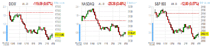 Основные фондовые индексы США в четверг снизились на фоне разочаровывающих результатов компаний 3M (MMM) и Caterpillar (CAT).