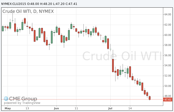 Стоимость сентябрьских фьючерсов на американскую легкую нефть марки WTI (Light Sweet Crude Oil) упала до 47,20 доллара за баррель на Нью-Йоркской товарной бирже.