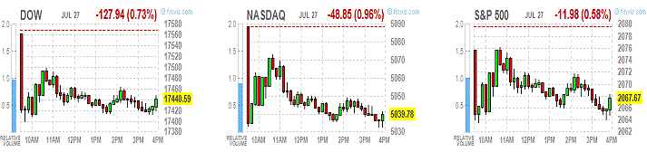 Промышленный индекс Доу-Джонса упал до самого низкого уровня за последние пять месяцев, композитный Nasdaq опустился до четырех-недельного минимума, а S&P 500 достиг минимума двух недель. Инвесторы испытывают беспокойство, что власти Китая сворачивают меры по поддержке рынка.