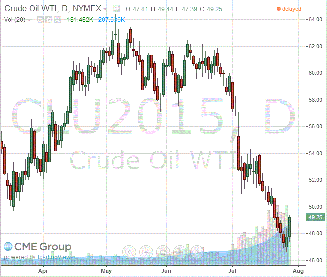 Стоимость сентябрьских фьючерсов на американскую легкую нефть марки WTI (Light Sweet Crude Oil) выросла до 49,25 доллара за баррель на Нью-Йоркской товарной бирже.