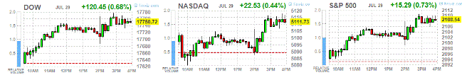 Основные фондовые индексы Уолл-стрит выросли в среду, получив поддержку от корпоративной отчетности и итогов заседания ФРС. Напомним, ФРС завершила двухдневное заседание по денежно-кредитной политике и приняла решение оставить ключевую процентную ставку около нуля. На заседании, намеченном на 16-17 сентября, руководству центрального банка предстоит принять трудное решение. Сегодня ФРС указала на прогресс на рынке труда США. Это является признаком того, что центральный банк нацелен на повышение процентных ставок в сентябре или позже в этом году. Тем не менее, в то же время ФРС просигнализировала об обеспокоенности относительно низкой инфляции, которая может убедить руководство центрального банка отложить повышение процентных ставок.