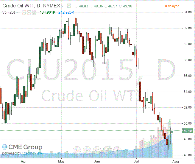 Стоимость сентябрьских фьючерсов на американскую легкую нефть марки WTI (Light Sweet Crude Oil) выросла до 49,10 доллара за баррель на Нью-Йоркской товарной бирже.