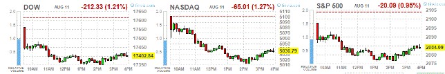 Основные фондовые индексы США продемонстрировали отрицательную динамику во вторник в основном на фоне девальвации китайского юаня, что подтолкнуло доллар выше, а также из-за давления на сырьевые товары. Как стало сегодня известно, индекс оптимизма малого бизнеса в июле составил 95,4, на 1,3 пункта выше, чем в июне. Экономисты прогнозировали рост индекса до 95,5. Национальная федерация независимого бизнеса США сообщила, что рост отмечен в 7 из 10 подындексов этого показателя. Рост основан на ожидания улучшений условия ведения бизнеса, планов увеличения запасов и создания рабочих мест. Доля ожидающих улучшения условий ведения бизнеса в ближайшие шесть месяцев увеличилась на 5%, но показатель остается на негативной территории.