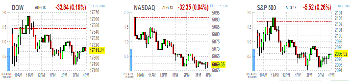 Американские биржевые индикаторы снизились во вторник на фоне падения цен на сырьевые товары и слабой отчетности крупнейшего в мире ритейлера Wal-Mart Stores.
