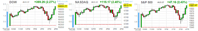 Dow +2.27% 16,654.90 +369.39