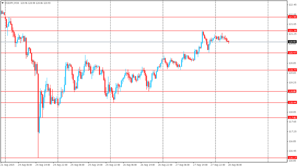 Иена также мало изменилась в цене, несмотря на выход крупного блока макроэкономической статистики. Розничные продажи в Японии в июле выросли на 1,6% по сравнению с тем же периодом предыдущего года, что выше ожиданий 1.1%. Данный показатель растет четвертый месяц подряд. Помимо этого, базовый индекс потребительских цен в Японии в июле не изменился по сравнению с тем же периодом предыдущего года после умеренного роста на 0,1% в предыдущем месяце, что стало позитивными новостями для центрального банка Японии, пытающегося преодолеть дефляцию и добиться постепенного роста цен.