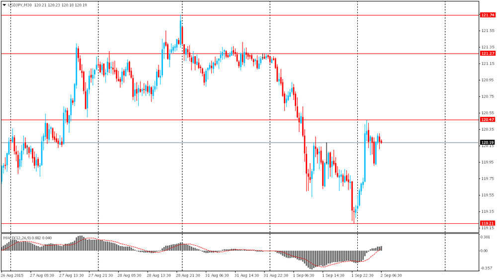 Курс иены упал с начала торгов в Азии, на фоне коррекции курса доллара после снижения на статистике из США и Китая, а также на фоне роста токийских акций. Тем не менее позже резкое падение акций материкового Китая замедлило рост японского индекса Nikkei, предотвратив тем самым дальнейшее восстановление доллара к японской валюте. Вчерашнее падение доллара было связано со статистикой из КНР. Государственное статистическое бюро КНР сообщило, что индекс деловой активности в промышленности страны в августе снизился до 49,7 пункта, совпав с прогнозом аналитиков и достигнув минимума с августа 2012 года. В июле индекс PMI составил 50 пунктов. Дополнительную поддержку иене как валюте-убежище оказали макроэкономические данные из США, согласно которым индекс деловой активности в промышленном секторе экономики страны в августе опустился до 51,1% с июльских 52,7%, что является самым слабым показателем с мая 2013 года.