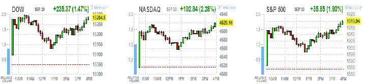 Основные фондовые индексы США резко выросли в среду, три основные индекса закончили свои худшие кварталы с 2011 года.