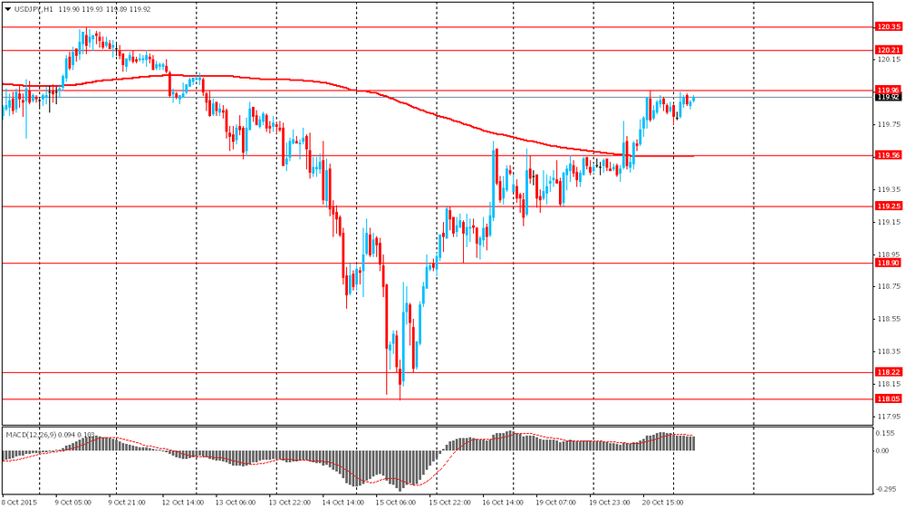 Иена немного снизилась после публикации данных по внешней торговле Японии за сентябрь. Согласно опубликованной статистике, экспорт из Японии в сентябре вырос менее значительно, чем ожидалось, из-за ослабления спроса в Китае и других странах Азии на 0,6% по сравнению с тем же периодом предыдущего года и составил 6,417 трлн иен, причем рост наблюдался 13-й месяц подряд. Экономисты прогнозировали рост экспорта на 3,4%. Инвесторы следят за данными по внешней торговле, так как падение экспорта может усилить ожидания относительно смягчения политики Банка Японии на его заседании, которое пройдет 30 октября.