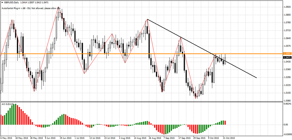 На этих данных пара фунт/доллар проколола психологическую отметку 1,55 (фунт вообще любит круглые уровни). Но при этом валюте не удалось превысить важнейшее сопротивление на 1,5507 - предыдущий максимум 15.10. Кроме того, не удалось даже краткосрочно удержаться выше 1,55, откатившись к поддержке на 1,5470.