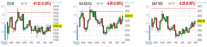 Основные фондовые индексы Уолл-стрит немного снизились во вторник после смешанных отчетов о доходах от крупных американских компаний, а также дальнейшего снижения цен на нефть.