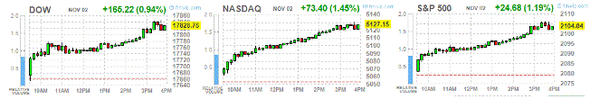 Инвесторы также ждут правительственного отчета по занятости в США за октябрь, который может повлиять на перспективы повышения процентной ставки ФРС. Напомним, при принятии решений по денежно-кредитной политике ФРС ориентируется на силу рынка труда и уровень инфляции. "Если данные по занятости окажутся хорошими, это, вероятно, увеличит вероятность повышения ставок в декабре", - заявил Марк Лучини, эксперт Janney Montgomery Scott.