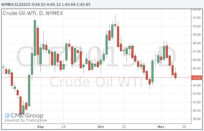 Стоимость декабрьских фьючерсов на американскую легкую нефть марки WTI (Light Sweet Crude Oil) упала до 43,64 доллара за баррель на Нью-Йоркской товарной бирже.